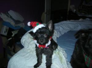 elvis is beautiful..this is my chorkie samantha,she is the only one out of 5 that was all black,my mom has 2 of her sisters that share elvis's colors.