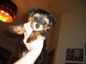 Here's my chorkie, Marley. He's 3 months old, and an absolute cuddlebug! If I so much as sit down to tie my shoe, he's on my lap ready for kisses. He looks a bit different than Elvis and Samantha, but his brothers had the longer hair, and his sister was solid black.