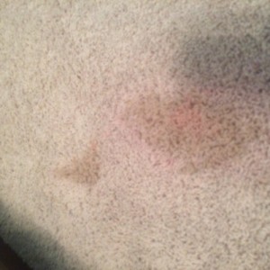 My husband's grandmother spilled a whole bottle of Pepto Bismol on our light cream colored carpet. We got out what we could at the time but it still left a nasty stain. It is now 3 weeks later and I just found a product called Spot Shot.