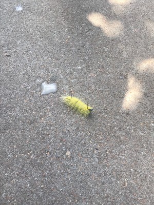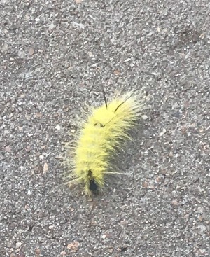 Beware of hairy yellow caterpillars with black spikes. They are American dagger moths that have have toxic properties when hairs are touched. One slight brush sent me to the ER with significant hives, elevated blood pressure, facial flushing, and chills.