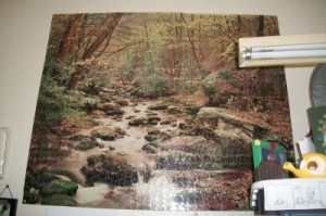 My girls love to do jigsaw puzzles and hate to break them apart after doing them. What to do with all those puzzles? I decided to cover the puzzle with clear contact paper. I can then use it as a beautiful placemat, furniture protector under plants, dog dishes mat, and I'm sure there are other uses I will find later! Very simple to do. After completing puzzle, simply measure the contact paper, adding 1 inch on all sides.