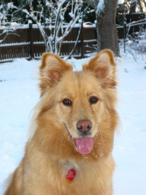 Apache - a golden/chow mix my daughter an I rescued from a shelter last December. He was wondering the streets when they found him. He was 1 year old but totally house trained. He started off in the dog pen and ended up in the house within a week. What a wonderful, loving, playful, well-mannered dog. Everyone that meets him tells him how beautiful he is! We couldn't have picked a better dog.