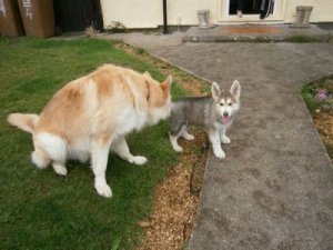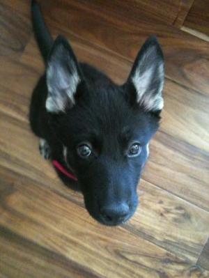 We have a 13 week old German Shepherd Siberian Husky, Dasha. According to our trainer, she's a pup with an attitude! We have to take different approaches to training with her as she finds all of the usual training methods humorous and almost laughs at us as we try to correct her bad behavior.