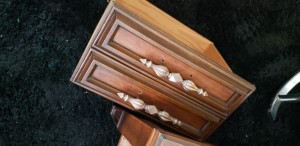 i have a merman on bottom it has comfort table 166 10 its 52"x16" it has two glass panels 22"x10 3/4" has bottom shelf that looks like its cane and cherry finish..could you help me out on its value.