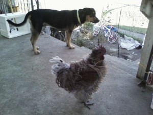 You are blessed. Here is one of my catahoula mix doggies, named Bruno, spending time with our Rooser, Phoenix.