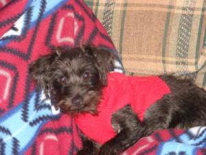 OMG, this so so fun and everyone is so kind. Poppy (Minnabird, he is a doll!) does look A LOT like Sophia. Yes her fur is not curly that is why I did not think she had poodle in her. Claire A your baby is beautiful too. (I would love to know his/her name.) I am amazed at how Sophia has ALL the markings of a Schnauzer. Funny I had a friend who had 2 Schnauzers, never was crazy about them. The ones she had had such SQUARE faces and were so low to the ground. Sure never thought I would own one, but they are so cute. Thanks TO ALL for your kind comments and the pics are to die for, I would love to be able to pinch all their cheeks. Do dogs have cheeks? Well I squeezes Sophia's (ever so gently) cheeks, at least where they would be if she were human ;) Thanks again!