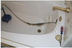Also there is a small item you can buy at various hardware stores. It's normally a 99 cent item. It is a long slender stripe of plastic with barbs on it similar to the thorns on a rose bush. These barbs bush through the hair clog and then grip the hair clog and pull it out when you retrieve the tool. This works pretty good, providing you can reach the clog.