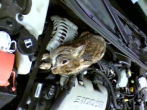 How about a rabbit? The technician found a rabbit in our engine compartment sitting on top of the engine. The menace chewed my car wires first (major damage)with the estimated cost of over $2,000.00. I couldn't figure out how it could have such big teeth mark in my car. My car is still in the shop waiting for a wire harness.