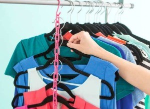 Use shower curtain hooks. I put about 10 on each hanger then hang up the clothes. Put each piece on a seperate hanger and hang onto the curtain hooks. It works good when you don't have a lot of closet space.