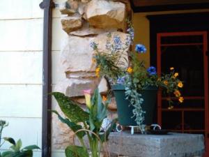 My Mother plants her large clay pots full of blooming flowers that must be brought in every winter. Right before the 1st frost all she has to do is have my brother pull the pot out of the flower bed & store in a cool, dark area-usually in the basement. Then, all she has to do the following year is to place the pot back in the hole in the garden soil where it was pulled from & water.