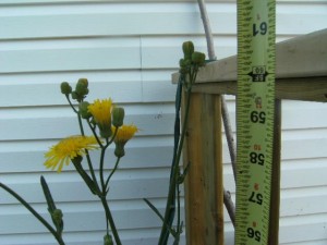 Later, I will post a close-up picture of the yellow flowers and the white fluffy ones when they go to seed. Ironically, they are slightly smaller than the normal dandelion flowers. It sounds like I need to call my local agricultural experts.