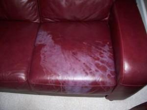 I have a bleach stain on a new leather chair. Is there any way to remove it?