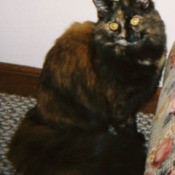 Molly Mew (Tortoise Shell Calico)Molly will turned 2 on June 19th. I believe she is a tortoise shell calico. I got Molly from a neighbor. Before I knew them, I used to see Molly's mother in the windows and I nicknamed her "pretty kitty".