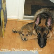 What Mix is this Dog?What type of dog is this She is 11 wks. old and is tough. She gets along with our BIG German Shep. They said she was Collie/German Shep. but I don't think so. She almost looks like Rhod. Ridgeback cross?