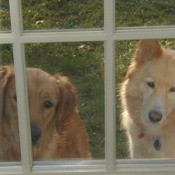 Hannah (Samoyed/Golden Retriever) and Kona (Golden Retriever)Hannah is 5 and is a Samoyed/Golden Retriever, Kona is 2 and is a Golden Retriever. Both beauties are rescued from animal shelters, using Petfinder.com. We adopted Hannah when she was 6 months old, and we adopted Kona when she was 1 1/2 years old.