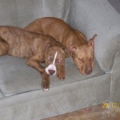 What Breed is My Dog?Just in time for Christmas we had two puppies rush into our house the other day when we came home from the store. We feel they have been abused and abandoned. After posting ads to find the owners we have decided to keep them but now the big question...what are they? I originally thought Pitt Bull, but their heads don't seem square enough. Does anyone know?