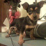 Daijah (Pit Bull Mix?)Daijah is a 7 week old Pit Bull Mix (?) that we got 1 and a half weeks ago. She likes to nip me and run around chewing on everything. She is a delight.