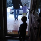 Family: Josh Saying GoodbyeThis is a picture of my Grandson Josh sadly watching Daddy and Sissy going to work and school.