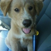 What Breed is My Dog?This is our Chewy. We know he is a golden mixed with something. What do you think he could be mixed with? His coat is fluffy, his tail curls, he has white at the tips of this feet and tail, and he does not have a purple/black tongue (or even speckles).