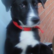 What Breed Is Our Dog?We were told our dog is a lab, but we are curious to know what he is mixed with.  His snout is extra long for a lab, and his eyes are too close together. Also, he is black with white.  At this time he is 4 months old and 27 pounds.  What do you think?