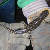 Wildlife: Eastern Tiger SalamanderMy husband found this outside our front door, and had to bring it in to show the boys. It is an eastern tiger salamander. The white milky spots on the tail is toxin that is secreted as a means of protection from possible predators.