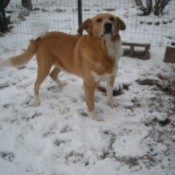 What Breed is My Dog?We were given this dog when he was a little puppy. He has more fur around his neck, he is "golden yellow" and white. We think he might be a Golden Retriever mix of some sort. Does anyone have an idea what he is mixed with?