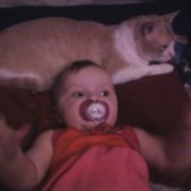 Buster (Cat)Buster is a 2 year old cat. He has soft long hair. My husband had taken our small poodle out for his morning duties. Bear (our poodle) found this tiny 4 inch long kitten that the dogs had brought up to the door and were dutifully watching.