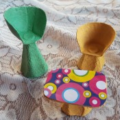 Egg Carton Miniature FurnitureThis is a super easy and fun way to make tables and chairs for small dolls or for a doll house. Children will not only love to play with these, but can boast that they made or helped make them themselves.