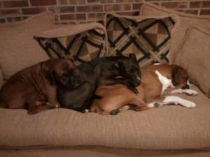While it is tempting to put them in the same crate together, don't. Each Boxer should have his/her own crate. You can put the crates right up against each other so they can have comforting closeness, but don't ever try to put two territorial Boxers into the same crate. Ever.