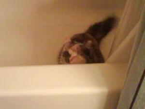 Pearl in the bathtub sanctuary. It's no surprise to her when the showers on as it makes her want to jump in even more!