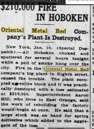 Googling it, I could only find one reference to the Oriental Metal Beds on a Hoboken Museum site and that it became the Federal Metal Bed Company in 1924.