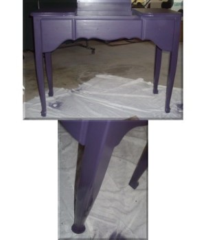 I let it dry 24 hours and I first tested the front removable piece of wood that I could screw off and I painted it with "Ace" Premium Enamel spray paint (deep purple).