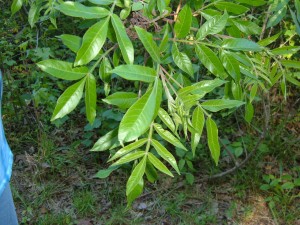 I learned something new. My daughter and I took a stroll on a farm path down by the woods. As we were walking, I noticed a tree that had a limb, about head high, that was filled with pretty leaves with small white clusters of flowers.
