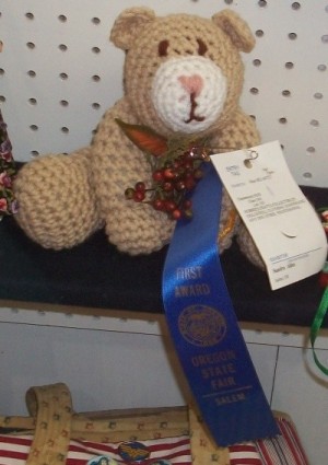I entered a few things in the State Fair this year, and won a blue ribbon for my crocheted teddy and one poem, with a red ribbon for my other poem. I thought you all might like to share in my bragging rights!