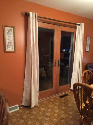 You asked for an honest opinion. I think you made an excellent choice in color and fabric. But...the curtains are too large, and coupled with the rod, have dramatically altered the original effect. It seems you no longer have french doors, just an overpowering wall treatment.