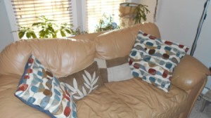 You could use a color like yellow, cantaloupe, or soft green on the walls. You can only paint one wall, if you wish. Also, get some pillows with those colors in them.