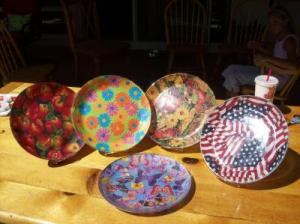 Voila! You have a pretty "porcelain" plate. I got the clear plates at Walmart for about $1.50. You can also purchase a small plate holder or a plate hanger for displaying your plate. Here is a pictures of the some of the ones I made.
