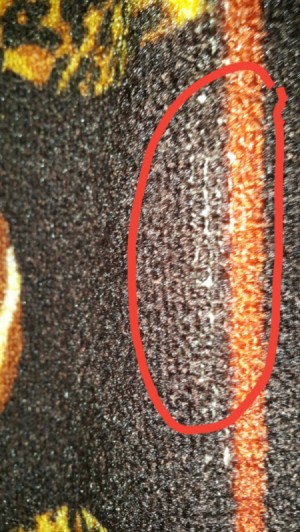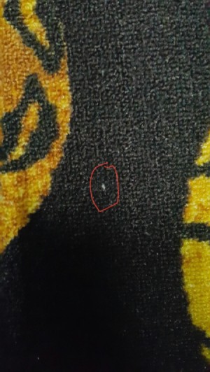 I bought a brand new synthetic nylon rug. I didn't notice these empty dots until I saw it under the white light. So is this infestation of a moth, beetles, or their larva or any other kind of bug that eats fibers or is it just a badly manufactured rug?