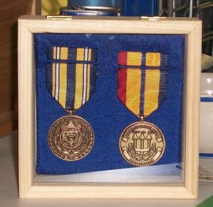 I love this. I gave my ex father in law a navy medal and put it in a dollar tree shadowbox on top of some pretty blue velveteen fabric.