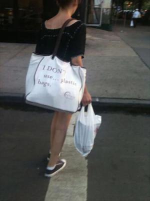 I feel the same way about plastic bags. I've been using canvas bags for about 25 years, and some of the "green" cloth bags the supermarkets sell for about 99 cents. I got a bunch of those for free by redeeming points from a brand of cat litter, until they ended that promotion last year. Even so, I occasionally forget to bring them into the store with me and end up with the plastic ones; I also shop for a friend who prefers them, because he is disabled with chronic fatigue and doesn't want the extra work of folding up and returning my green bags.