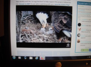 I'm watching the Decorah eagle cam located in Iowa. Mom laid her 1st egg 2-21-18.  You can watch the eagles day and night, although at night, you will be watching them sleep.  Website:  Eagle Cam