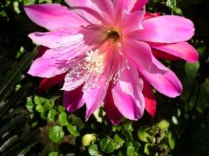 This is a night blooming cactus. The hummingbirds and bees love it and they were on it last night.
