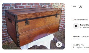 It is very difficult to provide information on old/antique/vintage trunks but especially difficult with a trunk like this one that has almost nothing that is 'special' or note worthy. It is pretty much just a plain old wooden trunk that could have been hand made at anytime in the past 100 years. Also, from the pictures it appears to be in less than good condition and would probably not appeal to anyone except to use as a tool box or maybe a college student that wanted it to store 'stuff' and use as a table.