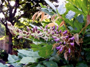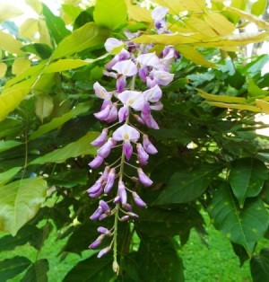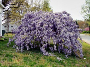 This wisteria is being grown by someone living close to my sister. It shows the unlimited potential of growing a wisteria in tree form. Beautiful, yes?