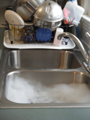 Voila! ( or wa-la, as some say), I got suds, lots of suds! And guess what? I still had suds left after doing all the dishes. Wont wonders never cease?