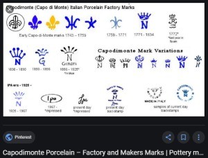 The Neapolitan "N" and crown pottery mark were never trademark protected. There have been many variations with different fonts of the "N" and different styles of the crown or coronet. Technically any porcelain maker could use this mark and claim to be Capodimonte porcelain. And many have.