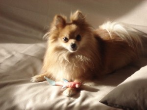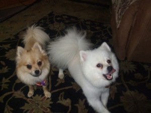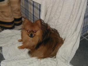 Here's our rescued little 8 year old Thumper. He's a standard Pom and we had to have him neutered. He's been nothing but a joy. Because he was older when we got him, we didn't have to do any potty training. he goes right outside and does his business immediately.