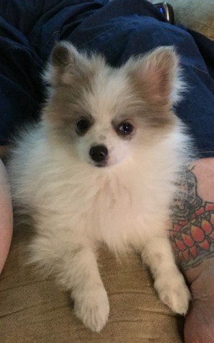 We just got a Pom, she's white and blue. We've had her 6 weeks and she was 8 weeks when we got her.