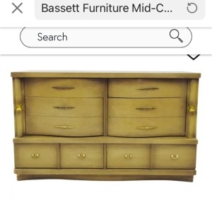 The MCM Bassett dresser drawer pulls are listed on Etsy for $2.50+ each: