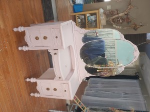 Hello.  I am looking to identify a possible antique vanity.  It has what looks like hand tooled dovetails.  It needs work as the drawers are banged up but it is still quite pretty.